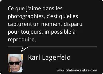 Ce que j'aime dans les photographies, c'est qu'elles capturent un moment disparu pour toujours, impossible à reproduire.