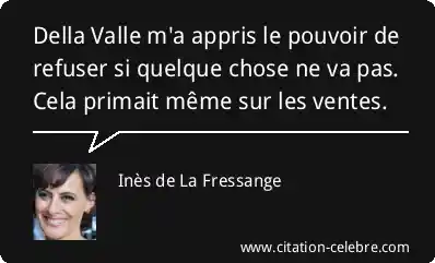 Citation Inès de La Fressange chose : Della Valle m'a appris le pouvoir de refuser si quelque...