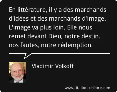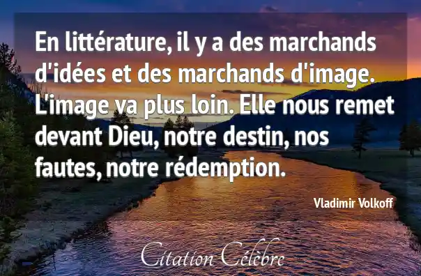 En littérature, il y a des marchands d'idées et des marchands d'image. L'image va plus loin. Elle nous remet devant Dieu, notre destin, nos fautes, notre rédemption.