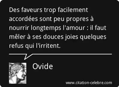 Des faveurs trop facilement accordées sont peu propres à nourrir longtemps l'amour : il faut mêler à ses douces joies quelques refus qui l'irritent.