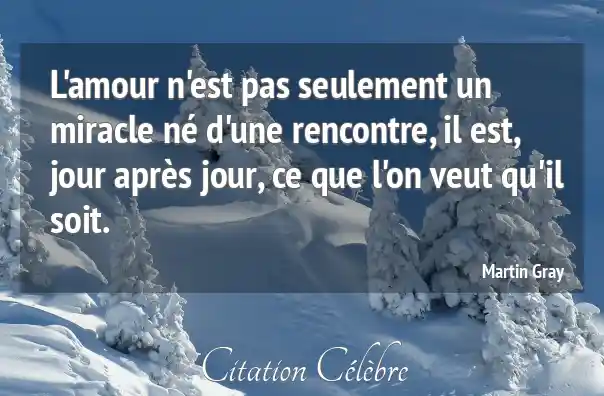 L'amour n'est pas seulement un miracle né d'une rencontre, il est, jour après jour, ce que l'on veut qu'il soit.
