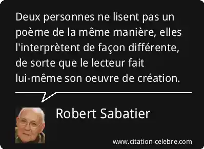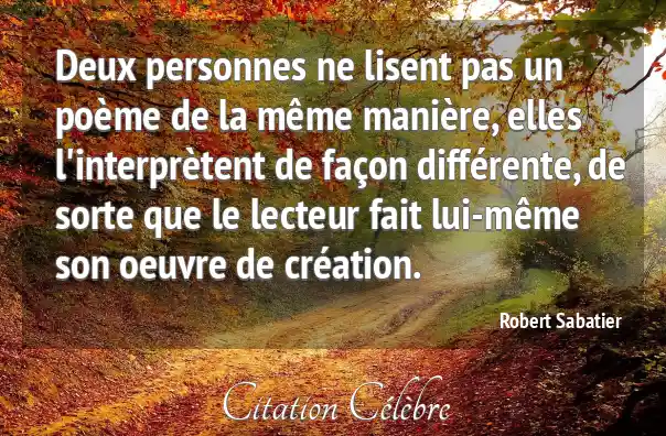 Deux personnes ne lisent pas un poème de la même manière, elles l'interprètent de façon différente, de sorte que le lecteur fait lui-même son oeuvre de création.