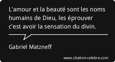 L'amour et la beauté sont les noms humains de Dieu, les éprouver c'est avoir la sensation du divin.