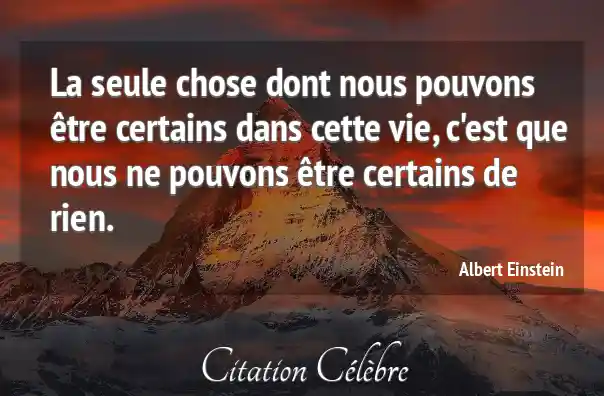 La seule chose dont nous pouvons être certains dans cette vie, c'est que nous ne pouvons être certains de rien.