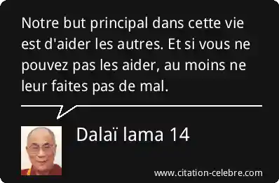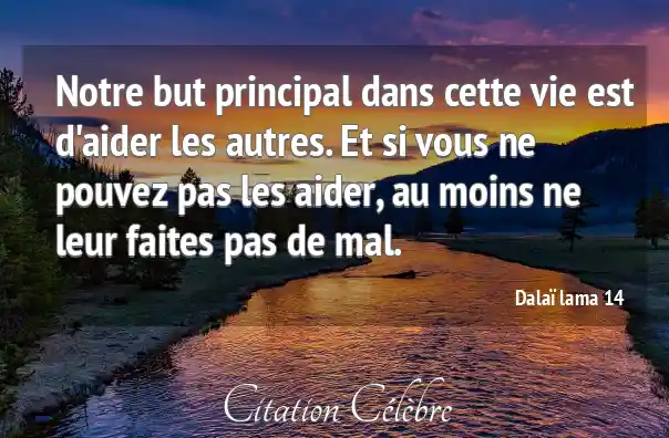 Notre but principal dans cette vie est d'aider les autres. Et si vous ne pouvez pas les aider, au moins ne leur faites pas de mal.
