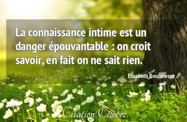 La connaissance intime est un danger épouvantable : on croit savoir, en fait on ne sait rien.