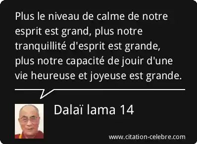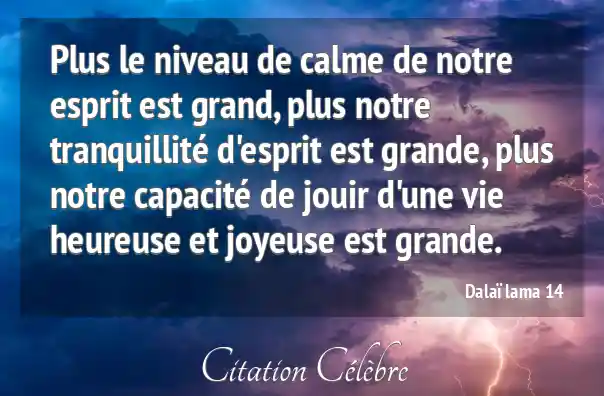 Plus le niveau de calme de notre esprit est grand, plus notre tranquillité d'esprit est grande, plus notre capacité de jouir d'une vie heureuse et joyeuse est grande.