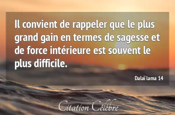 Il convient de rappeler que le plus grand gain en termes de sagesse et de force intérieure est souvent le plus difficile.