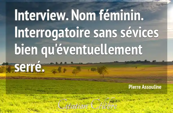 Interview. Nom féminin. Interrogatoire sans sévices bien qu'éventuellement serré.