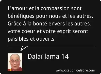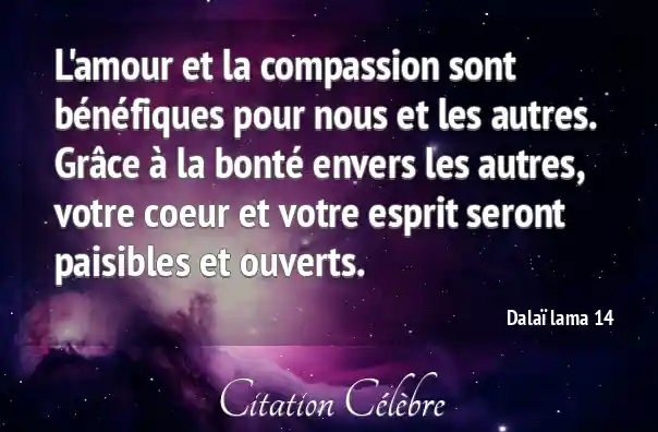 L'amour et la compassion sont bénéfiques pour nous et les autres. Grâce à la bonté envers les autres, votre coeur et votre esprit seront paisibles et ouverts.