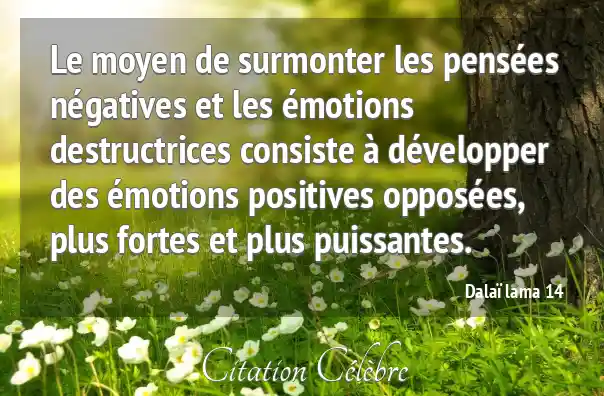 Le moyen de surmonter les pensées négatives et les émotions destructrices consiste à développer des émotions positives opposées, plus fortes et plus puissantes.