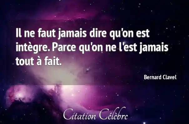 Il ne faut jamais dire qu'on est intègre. Parce qu'on ne l'est jamais tout à fait.