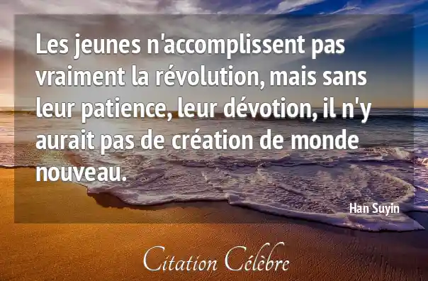 Les jeunes n'accomplissent pas vraiment la révolution, mais sans leur patience, leur dévotion, il n'y aurait pas de création de monde nouveau.