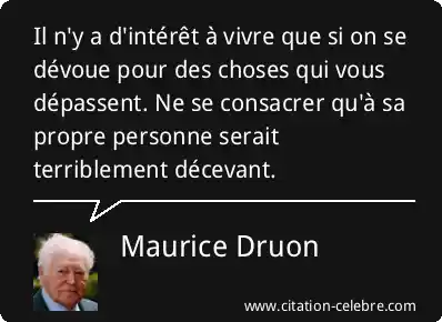 Il n'y a d'intérêt à vivre que si on se dévoue pour des choses qui vous dépassent. Ne se consacrer qu'à sa propre personne serait terriblement décevant.