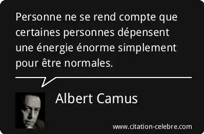 Cette phrase d'Albert Camus souligne une réalité souvent invisible : pour certaines personnes, l'acte de paraître "normal" ou de se conformer aux attentes sociales et aux normes de la vie quotidienne est une tâche incroyablement épuisante. Elle révèle le décalage entre l'apparence extérieure et la lutte intérieure. L'énergie dépensée n'est pas pour accomplir des exploits, mais simplement pour maintenir un certain niveau de fonctionnalité perçu comme standard ou "normal" par les autres.