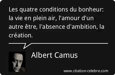 Les quatre conditions du bonheur: la vie en plein air, l'amour d'un autre être, l'absence d'ambition, la création.