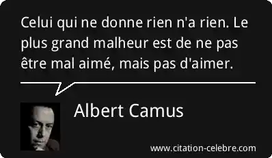 Celui qui ne donne rien n'a rien. Le plus grand malheur est de ne pas être mal aimé, mais pas d'aimer.