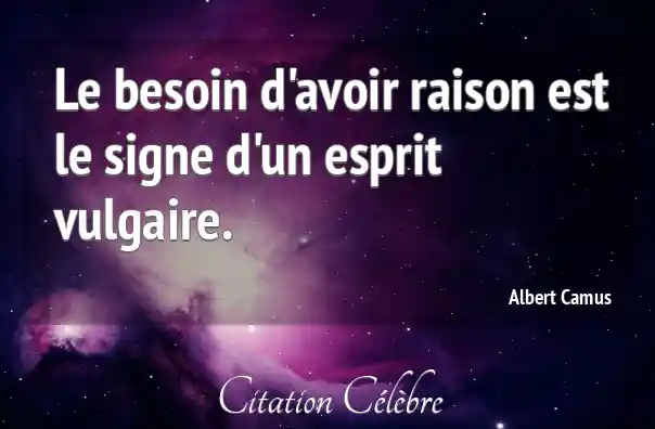 Le besoin d'avoir raison est le signe d'un esprit vulgaire.