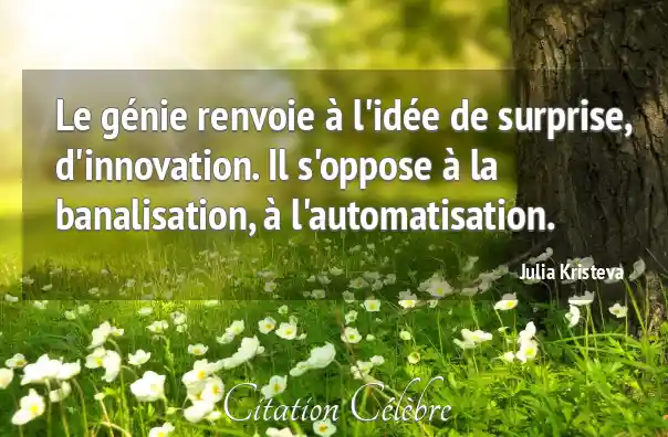 Le génie renvoie à l'idée de surprise, d'innovation. Il s'oppose à la banalisation, à l'automatisation.
