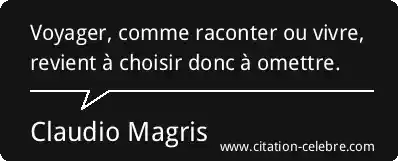 Voyager, comme raconter ou vivre, revient à choisir donc à omettre.