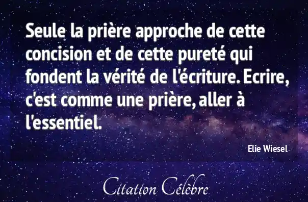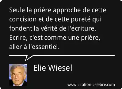 Seule la prière approche de cette concision et de cette pureté qui fondent la vérité de l'écriture. Ecrire, c'est comme une prière, aller à l'essentiel.