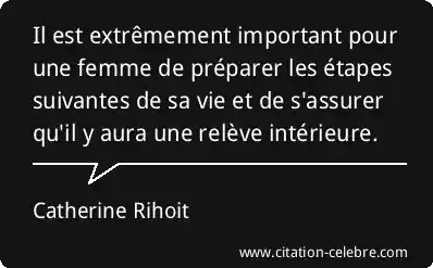 Il est extrêmement important pour une femme de préparer les étapes suivantes de sa vie et de s'assurer qu'il y aura une relève intérieure.