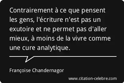 Contrairement à ce que pensent les gens, l'écriture n'est pas un exutoire et ne permet pas d'aller mieux, à moins de la vivre comme une cure analytique.