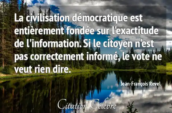 La civilisation démocratique est entièrement fondée sur l'exactitude de l'information. Si le citoyen n'est pas correctement informé, le vote ne veut rien dire.