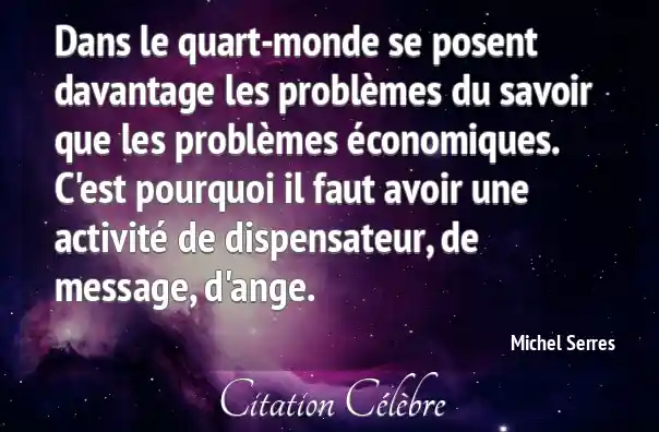 Dans le quart-monde se posent davantage les problèmes du savoir que les problèmes économiques. C'est pourquoi il faut avoir une activité de dispensateur, de message, d'ange.