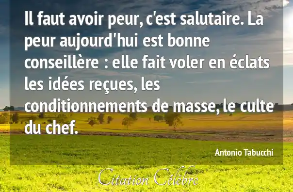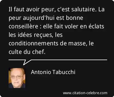 Il faut avoir peur, c'est salutaire. La peur aujourd'hui est bonne conseillère : elle fait voler en éclats les idées reçues, les conditionnements de masse, le culte du chef.