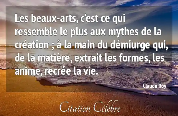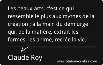 Les beaux-arts, c'est ce qui ressemble le plus aux mythes de la création ; à la main du démiurge qui, de la matière, extrait les formes, les anime, recrée la vie.