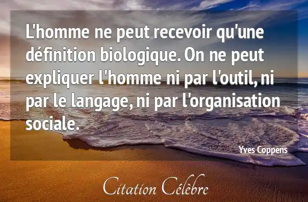 L'homme ne peut recevoir qu'une définition biologique. On ne peut expliquer l'homme ni par l'outil, ni par le langage, ni par l'organisation sociale.