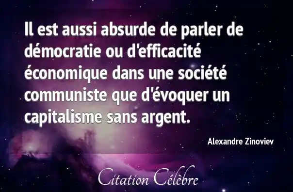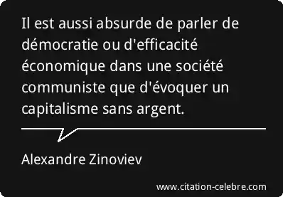 Il est aussi absurde de parler de démocratie ou d'efficacité économique dans une société communiste que d'évoquer un capitalisme sans argent.