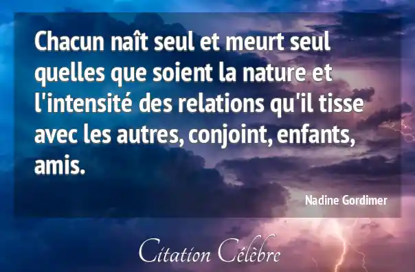 Chacun naît seul et meurt seul quelles que soient la nature et l'intensité des relations qu'il tisse avec les autres, conjoint, enfants, amis.