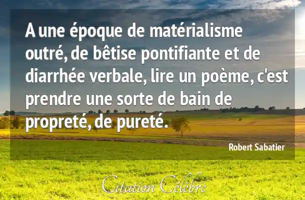 A une époque de matérialisme outré, de bêtise pontifiante et de diarrhée verbale, lire un poème, c'est prendre une sorte de bain de propreté, de pureté.