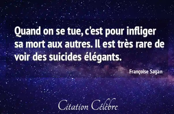 Quand on se tue, c'est pour infliger sa mort aux autres. Il est très rare de voir des suicides élégants.