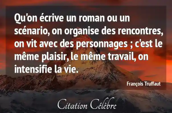 Qu'on écrive un roman ou un scénario, on organise des rencontres, on vit avec des personnages ; c'est le même plaisir, le même travail, on intensifie la vie.