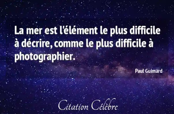 La mer est l'élément le plus difficile à décrire, comme le plus difficile à photographier.