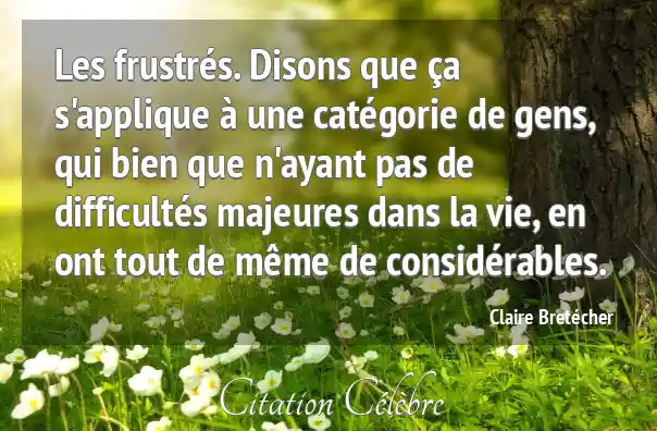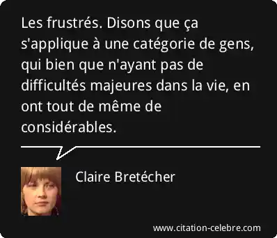 Les frustrés. Disons que ça s'applique à une catégorie de gens, qui bien que n'ayant pas de difficultés majeures dans la vie, en ont tout de même de considérables.