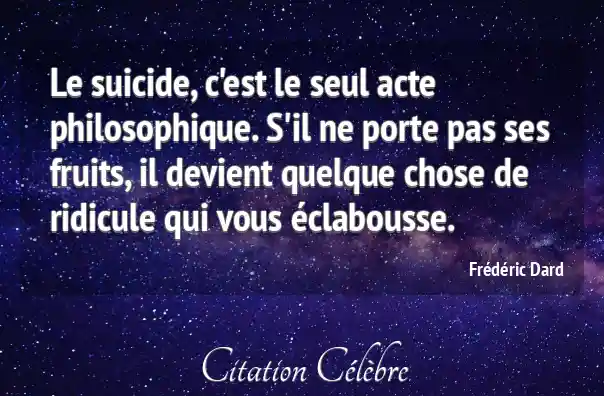 Le suicide, c'est le seul acte philosophique. S'il ne porte pas ses fruits, il devient quelque chose de ridicule qui vous éclabousse.