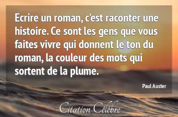Ecrire un roman, c'est raconter une histoire. Ce sont les gens que vous faites vivre qui donnent le ton du roman, la couleur des mots qui sortent de la plume.