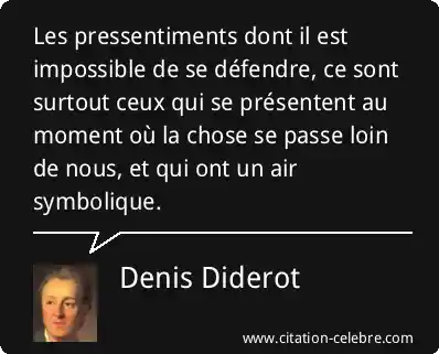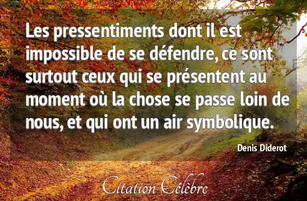 Les pressentiments dont il est impossible de se défendre, ce sont surtout ceux qui se présentent au moment où la chose se passe loin de nous, et qui ont un air symbolique.