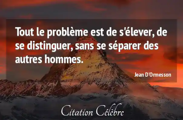 Tout le problème est de s'élever, de se distinguer, sans se séparer des autres hommes.