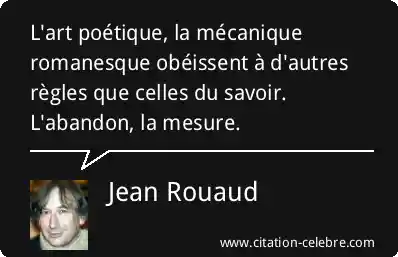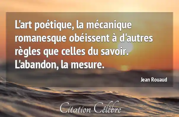 L'art poétique, la mécanique romanesque obéissent à d'autres règles que celles du savoir. L'abandon, la mesure.