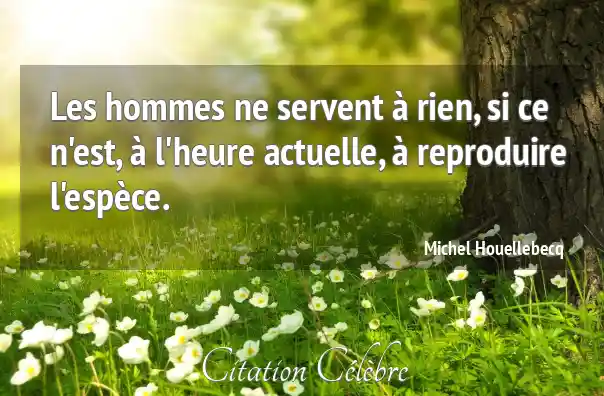 Les hommes ne servent à rien, si ce n'est, à l'heure actuelle, à reproduire l'espèce.