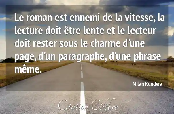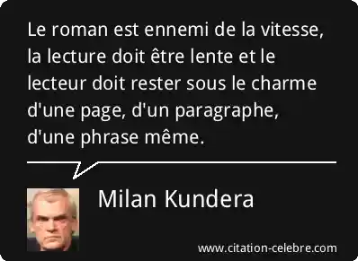 Le roman est ennemi de la vitesse, la lecture doit être lente et le lecteur doit rester sous le charme d'une page, d'un paragraphe, d'une phrase même.