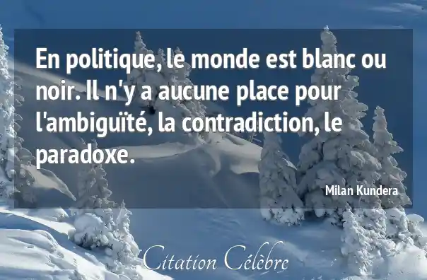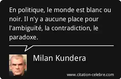 En politique, le monde est blanc ou noir. Il n'y a aucune place pour l'ambiguïté, la contradiction, le paradoxe.