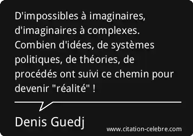 D'impossibles à imaginaires, d'imaginaires à complexes. Combien d'idées, de systèmes politiques, de théories, de procédés ont suivi ce chemin pour devenir "réalité" !