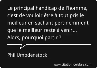 Le principal handicap de l'homme, c'est de vouloir être à tout pris le meilleur en sachant pertinemment que le meilleur reste à venir... Alors, pourquoi partir ?