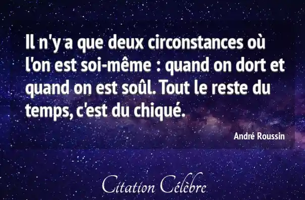 Il n'y a que deux circonstances où l'on est soi-même : quand on dort et quand on est soûl. Tout le reste du temps, c'est du chiqué.